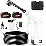 高圧洗浄機 コードレス 充電式 高圧洗浄機 20000mAh バッテリー2個付き 8MPa マキタ互換バッテリー 6in1多機能ノズル 噴射距離10M 高圧洗車機 5mホース 軽量 ポータブル 家庭用洗車機 洗車 駐車場 庭 外壁 階段 黄砂 ベランダ 窓 網戸 ガラス 玄関 浴室 墓石掃除 フォームガン 収納ケース付き 日本語取扱説明書 (ホワイト)